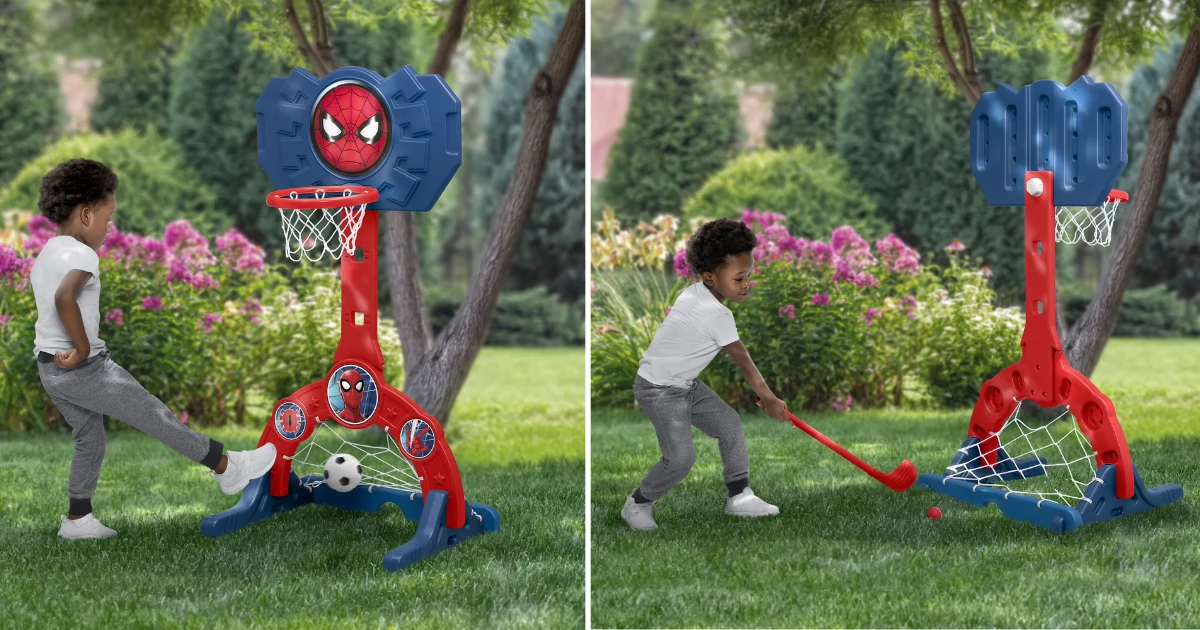 Walmart has the Marvel Spider-Man 4-in-1 Sports Center for ONLY $34.97 (Regularly $49.99). Game on! Tiny sports fans will love this Marvel Spider-Man 4-in-1 Sports Center by Delta Children. Designed to keep your little one active and entertained, this activity center features a basketball hoop, soccer/hockey net and golf game (basketball, soccer ball, two golf/hockey clubs and four golf/hockey balls included).