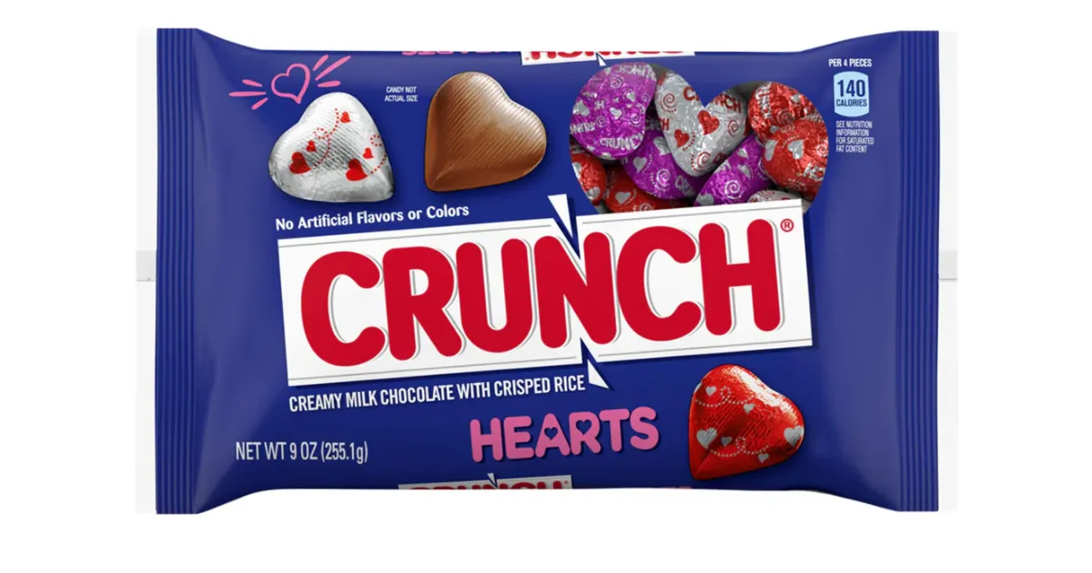About Crunch Chocolate Hearts: CRUNCH delivers the taste you know and love with these heart-shaped, individually wrapped chocolates made with 100% real milk chocolate.