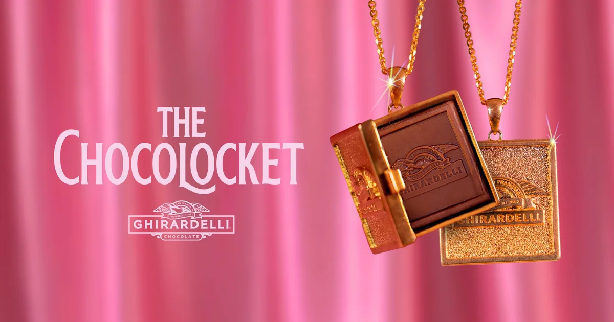 About the Ghirardelli Chocolocket: The Chocolocket is a custom-crafted 14K gold-plated locket created to hold one mini GHIRARDELLI SQUARES inside.