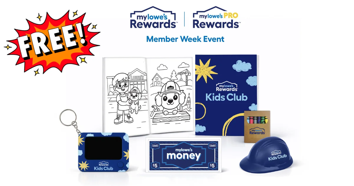Lowe's are giving away FREE items during their Member Week Giveaway Event! MyLowe's Rewards members who stop by in-store on January 10th starting at 10am est, will get FREE $5 MyLowe's Money, a Coloring Book, Crayons, a Keychain and more!