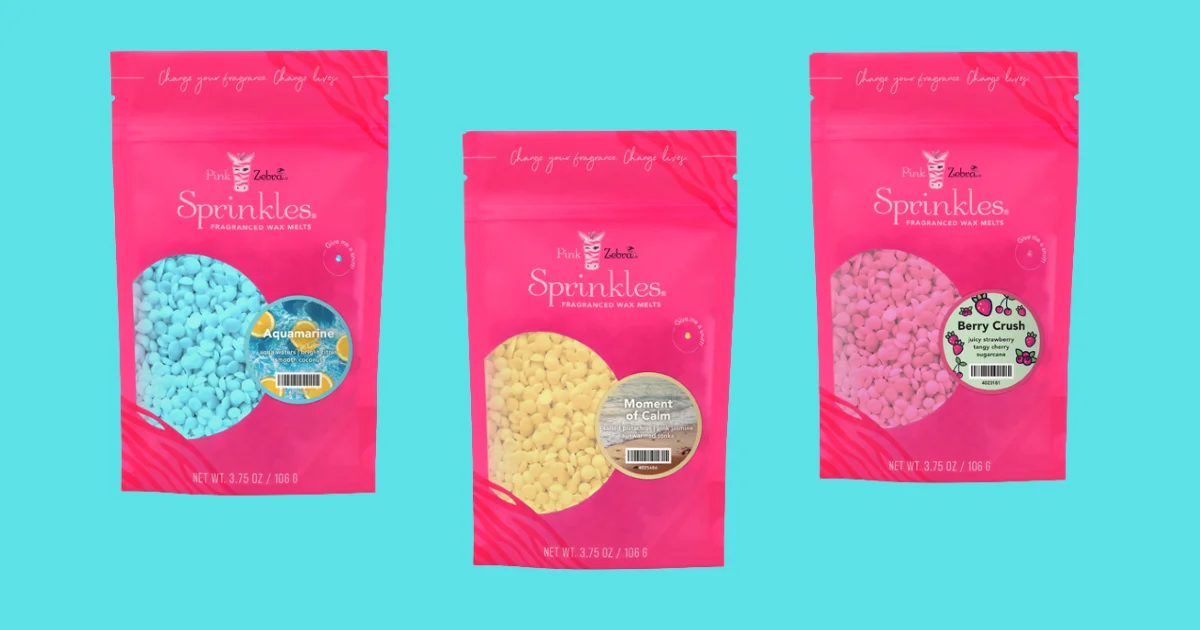 About Pink Zebra Sprinkles Wax Melts: They're a fun, customizable and eco-friendly way to fill your home with long-lasting fragrance. The tiny, scented wax melts are crafted from an exclusive Soft Soy blend of eco-friendly soy wax and food-grade paraffin wax.